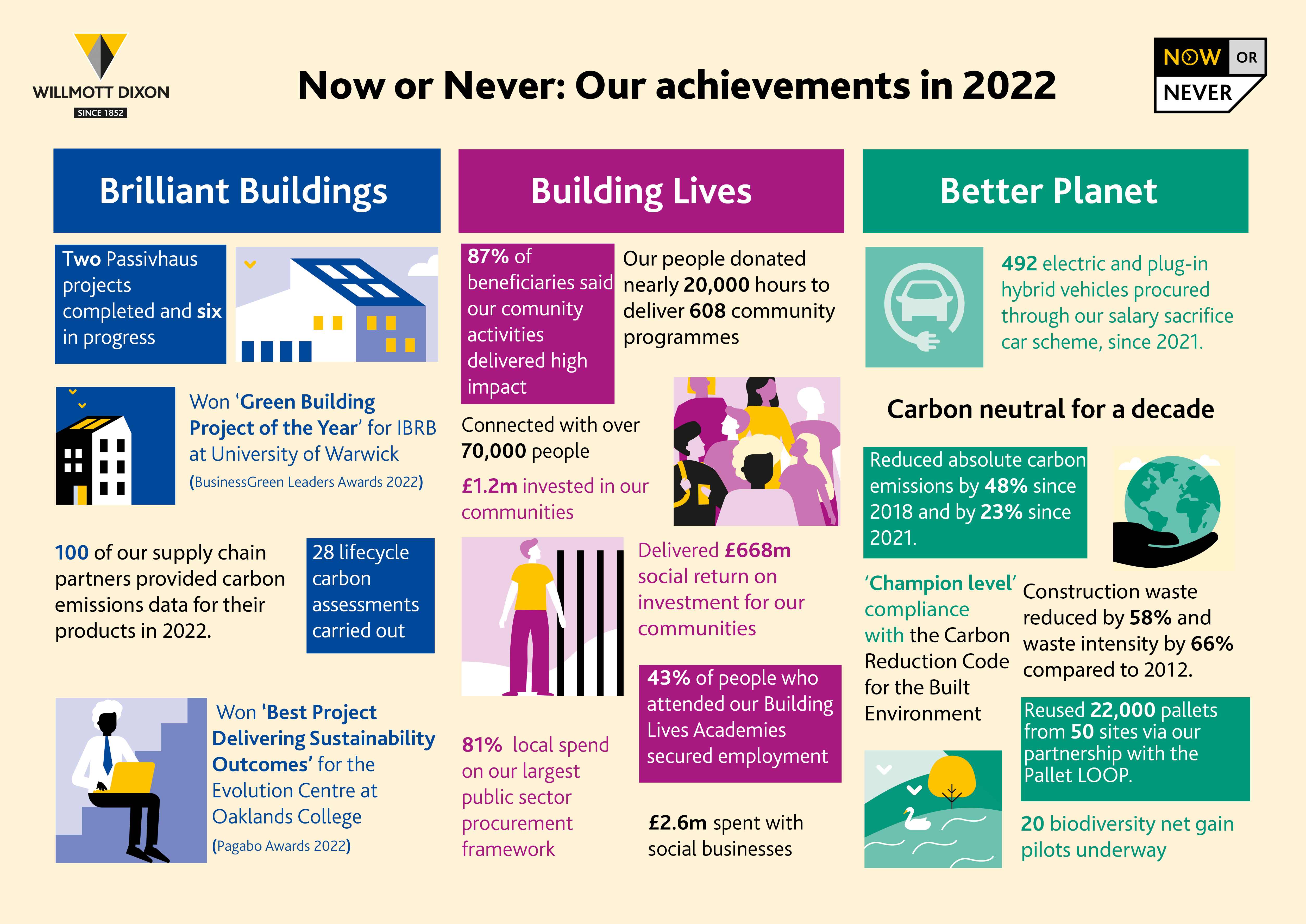 It comes three years after the company launched its Now or Never strategy as a roadmap to its intention to become a net zero carbon in operation by 2030. This reflects Willmott Dixon’s own sense of urgency in the role it must place in tackling the climate crisis. Just this month, the World Meteorological Organization suggested that planet earth may surpass the critical 1.5°C global warming threshold by 2027, underlining how the clock is ticking.