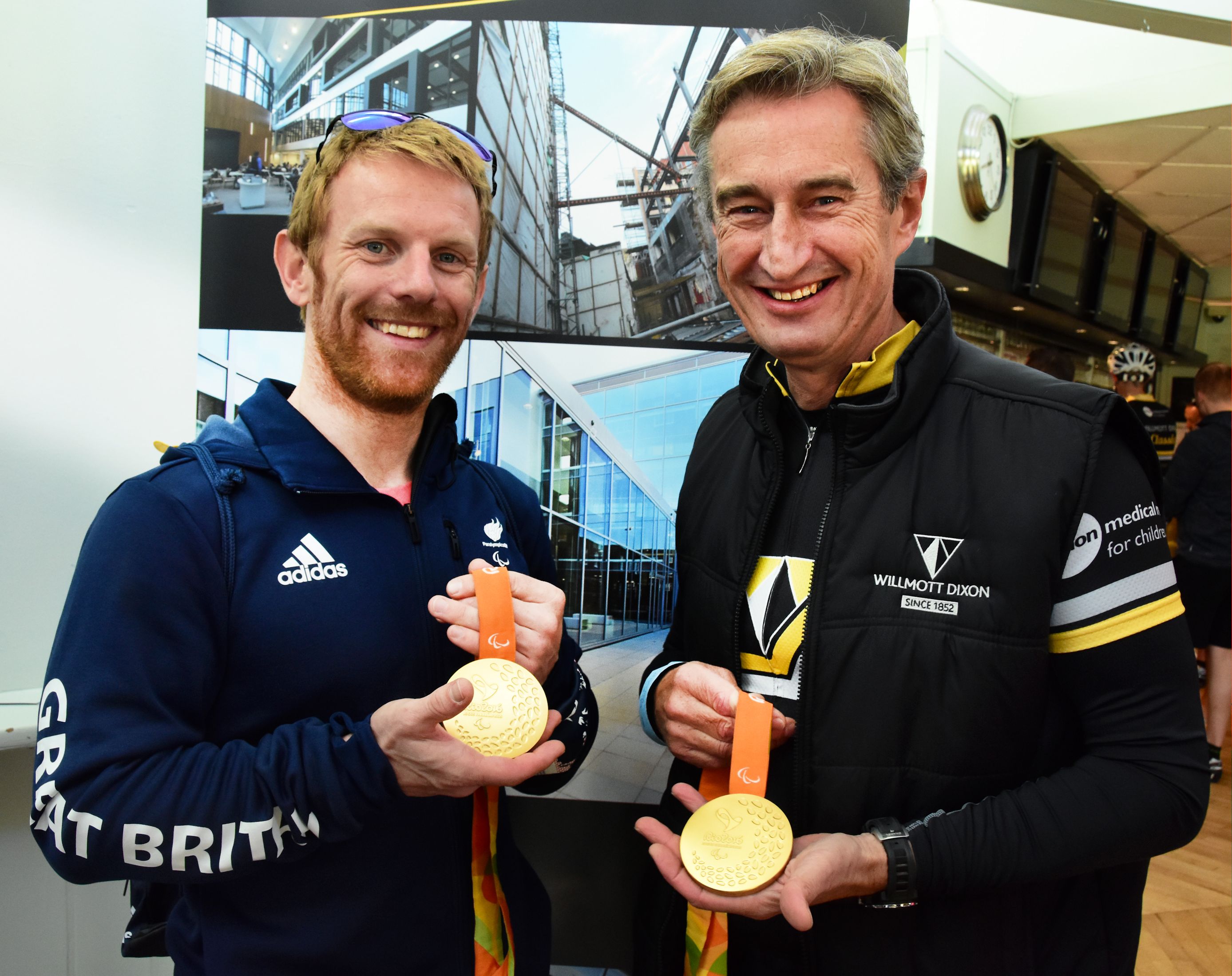 Jody showing his Rio gold medals to Rick Willmott