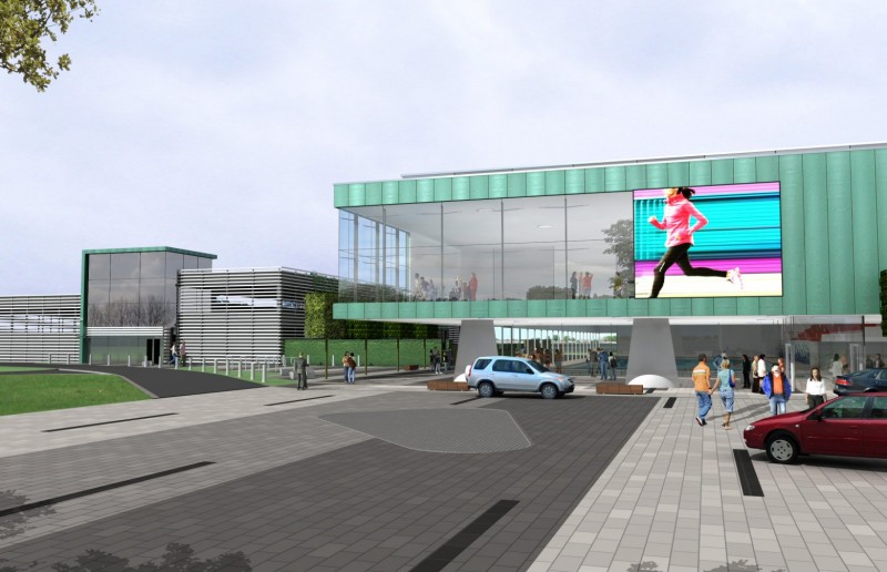 Inside the centre will be a wide range of sport and leisure facilities, including a 12 court sports hall, eight lane 50m swimming pool, sub-aqua dive pit, 150 station gym, four rink indoor bowls hall, two squash courts, climbing wall and café. Other features include a multi storey car park, food store, coach park and ride terminus.
