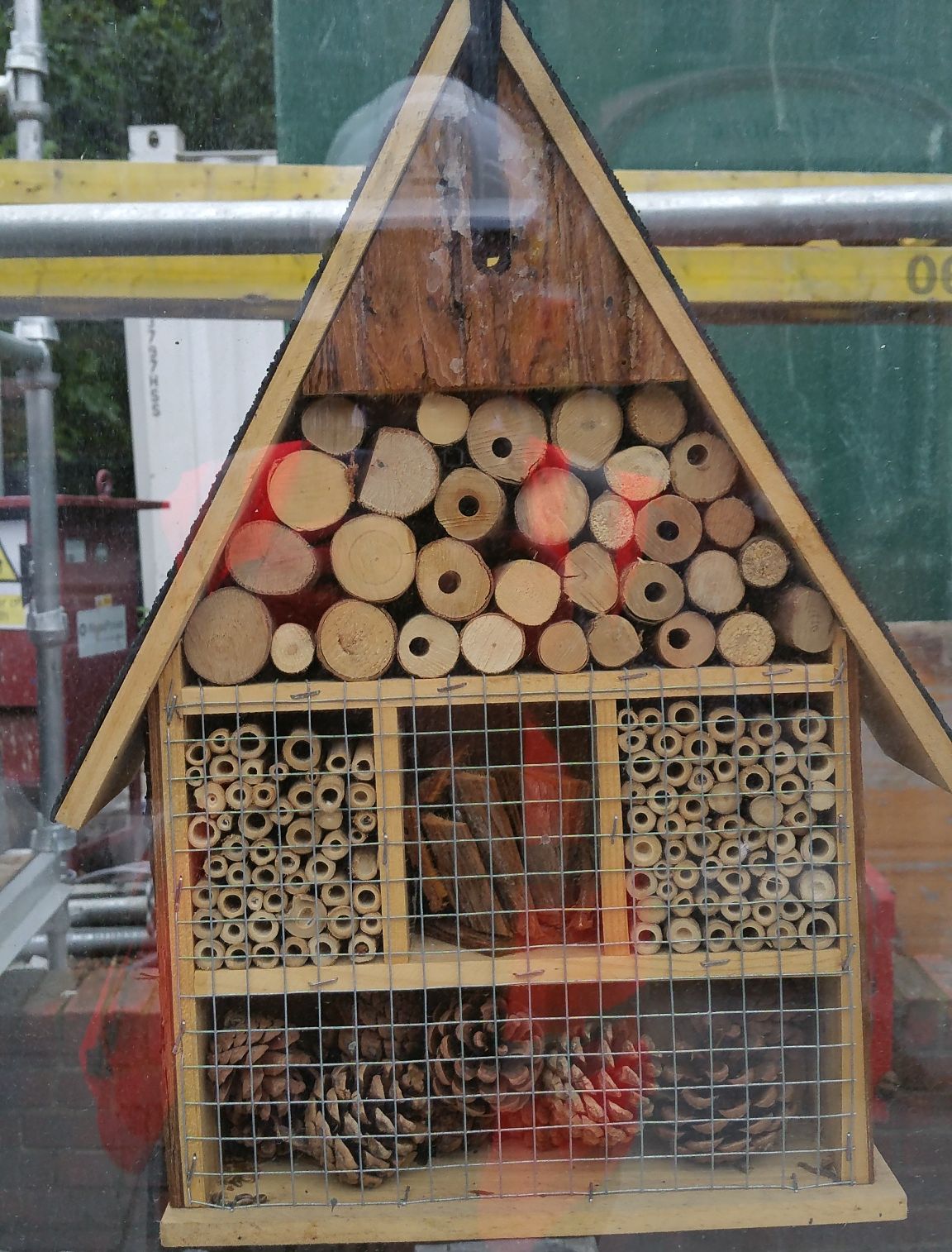 These enhancements can range from installing bug hotels (below) and bat boxes, restoring riverbanks and wildflower meadows to delivering detailed biodiversity action plans. All actions taken must be enhancements over ecologist specified mitigation or BREEAM requirements, exceeding normal expectations.