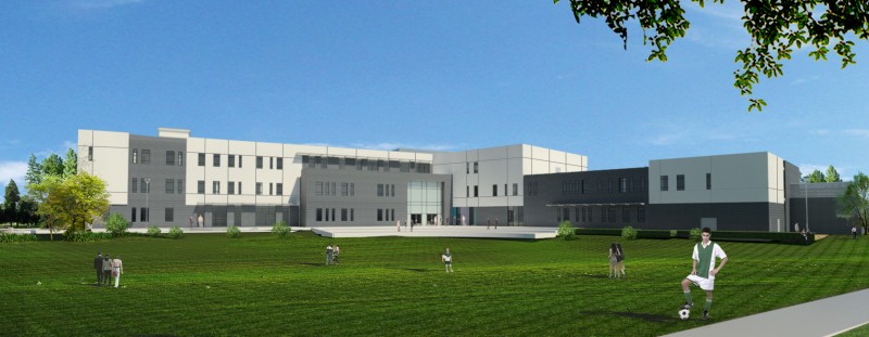 To keep down running costs, the new campus will have ground source heating and photo voltaic panels and be ready for students in September 2015.