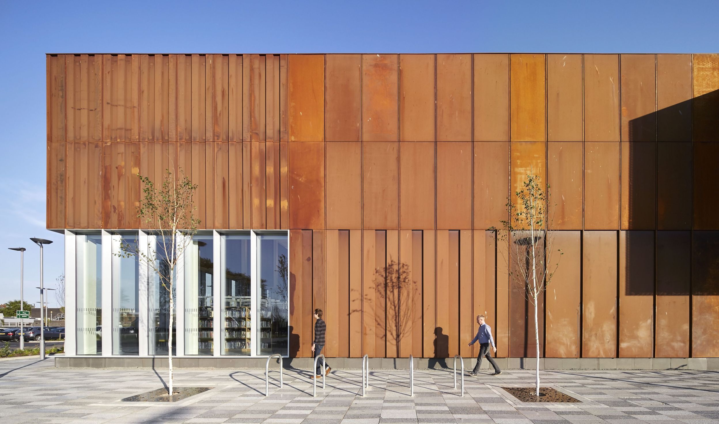 The oxidised-steel walls and prefabricated construction of this community centre are influenced by the region's ship-building heritage.