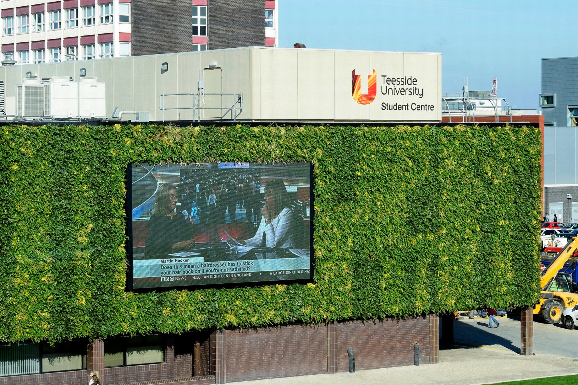Combining our university and leisure sector experience, we created a unique ‘living green wall’ for Teesside University as part of the university’s campus redevelopment.