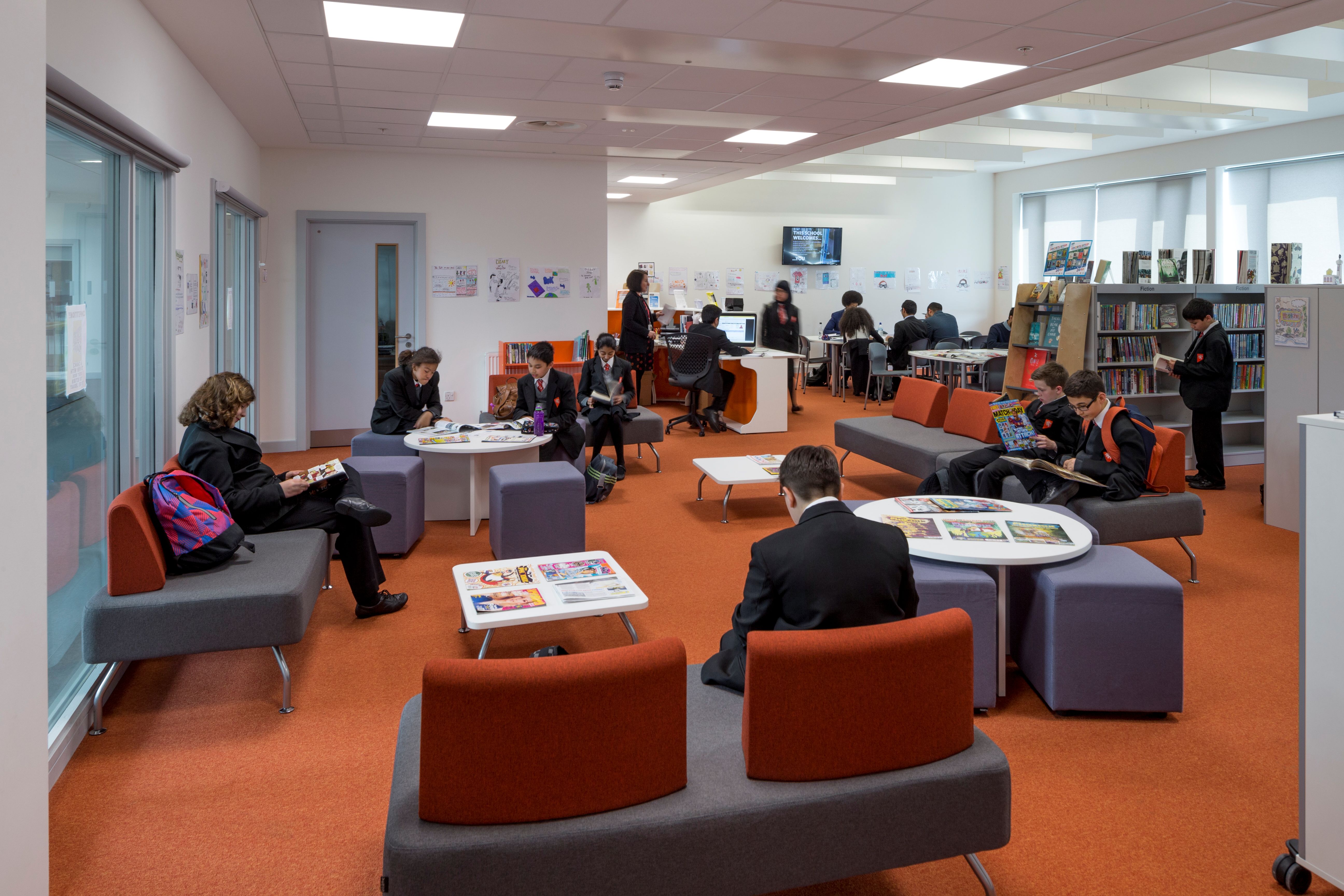 Designed by Associated Architects, each school year has their own teaching cluster grouped around a three-storey central atrium that houses the dining area and provides access to the physical activity and group gathering spaces. We also refurbished an adjacent building to provide additional space for the sixth form.